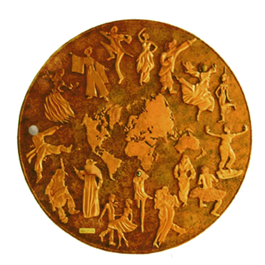 With all the unfortunate happenings in today's world I wanted to express the positive idea that the world could be a very peaceful place. The dancers are grouped around the map to allow the viewer to imagine a togetherness of people all over the earth trying to live together in peace and harmony. The movement of the figures expresses the natural and primal desire of all peoples to express their feelings and search for a way to achieve peace and tranquility in this troubled world.
